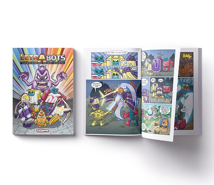 - Volume di divertenti fumetti con protagonisti i Letrabots e il magnifico scienziato Dr. Bazz.