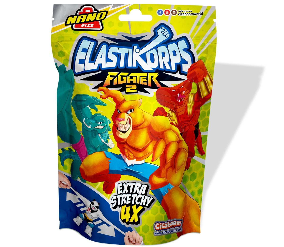 Elastikorps Fighter 2 Nano Size è la nuovissima collezione Cicaboom di action figure elastiche, alte 7 cm e vellutate al tatto! Stirali, deformali, arrotolali e annodali! Si allungano fino a 4 volte la loro dimensione originale e tornano sempre come prima! Grazie alla posa dinamica combattono come veri lottatori.