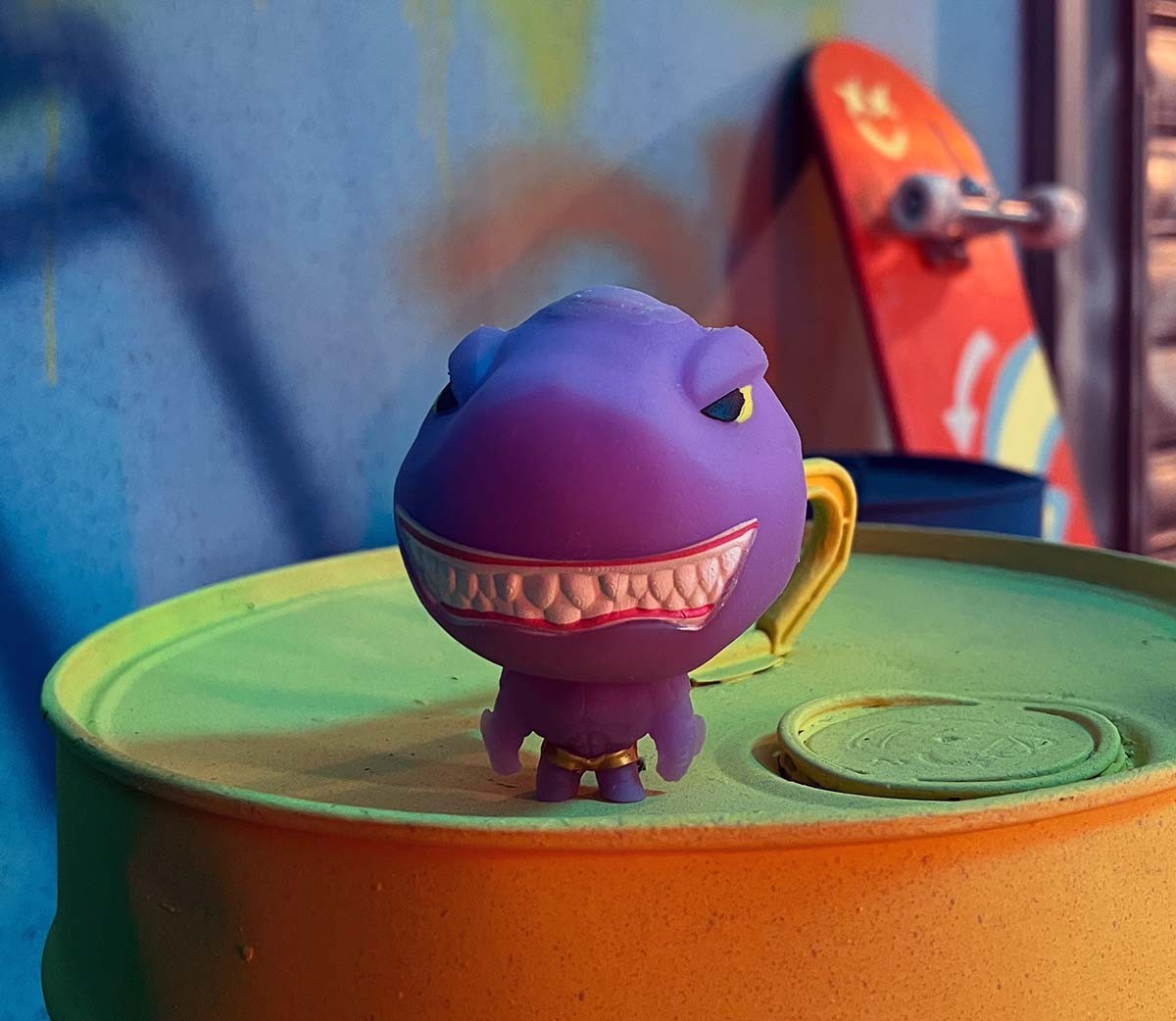 Finny è un personaggio Elastikorps HeroPOP, una collezione di 12 personaggi squishabily, stretchabili e vellutati al tatto.