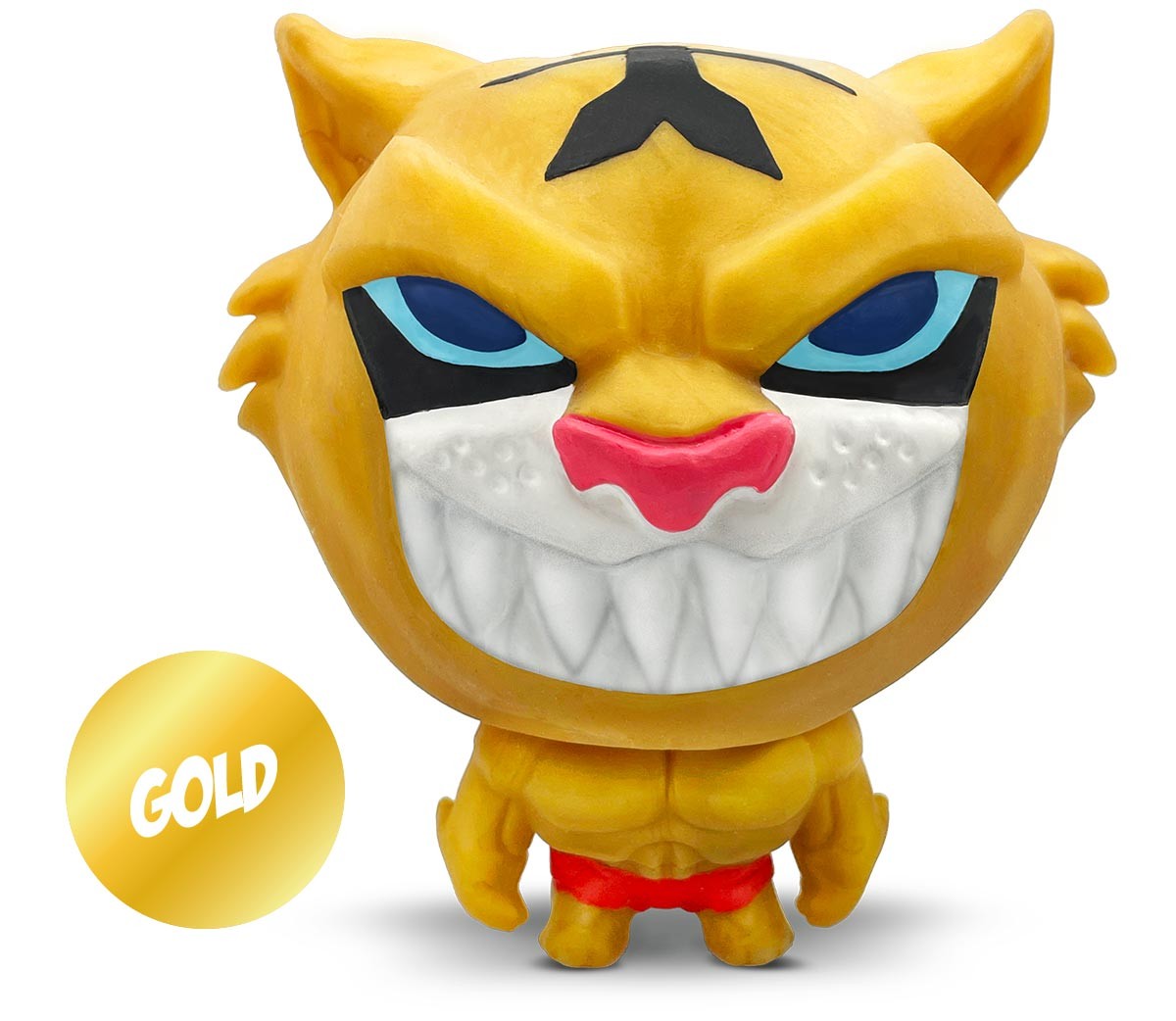 Gold Tiger è un personaggio Elastikorps HeroPOP, una collezione di 12 personaggi squishabily, stretchabili e vellutati al tatto.