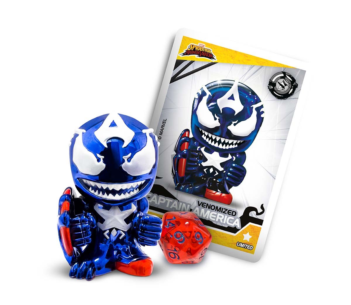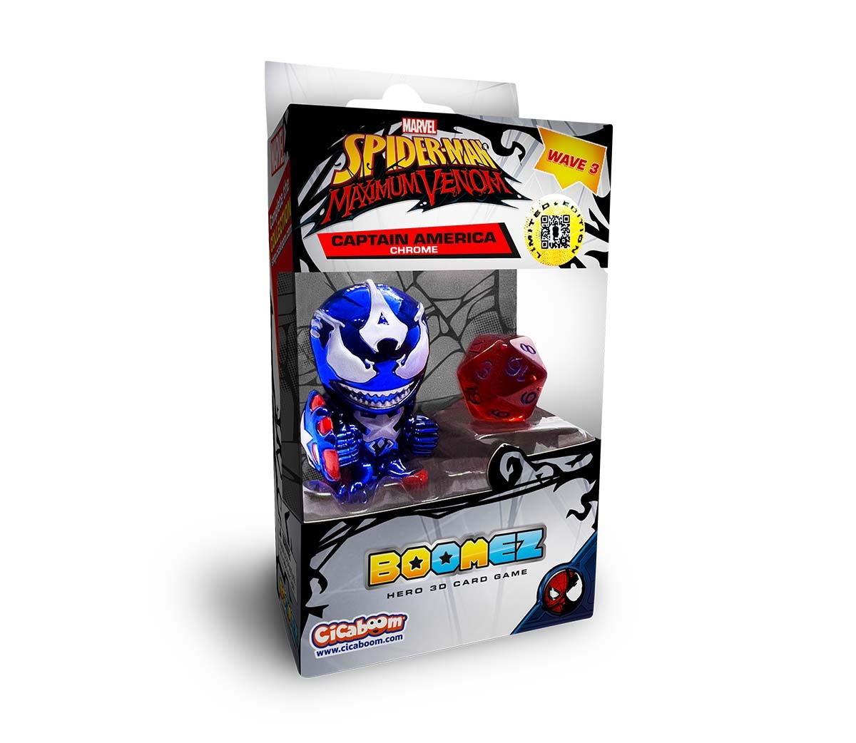 Captain America Chrome è venduto all'interno di un rifinito box trasparente da esporre nella propria collezione, all'interno del quale troverai anche una carta da gioco e un dado da 20 per sfidare i tuoi amici al divertentissimo Boomez 3D Card Game.