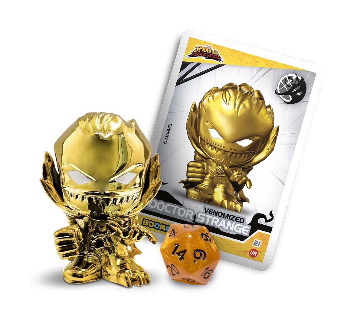 Doctor Strange Gold è venduto all'interno di un rifinito box trasparente da esporre nella propria collezione, all'interno del quale troverai anche una carta da gioco e un dado da 20 per sfidare i tuoi amici al divertentissimo Boomez 3D Card Game.