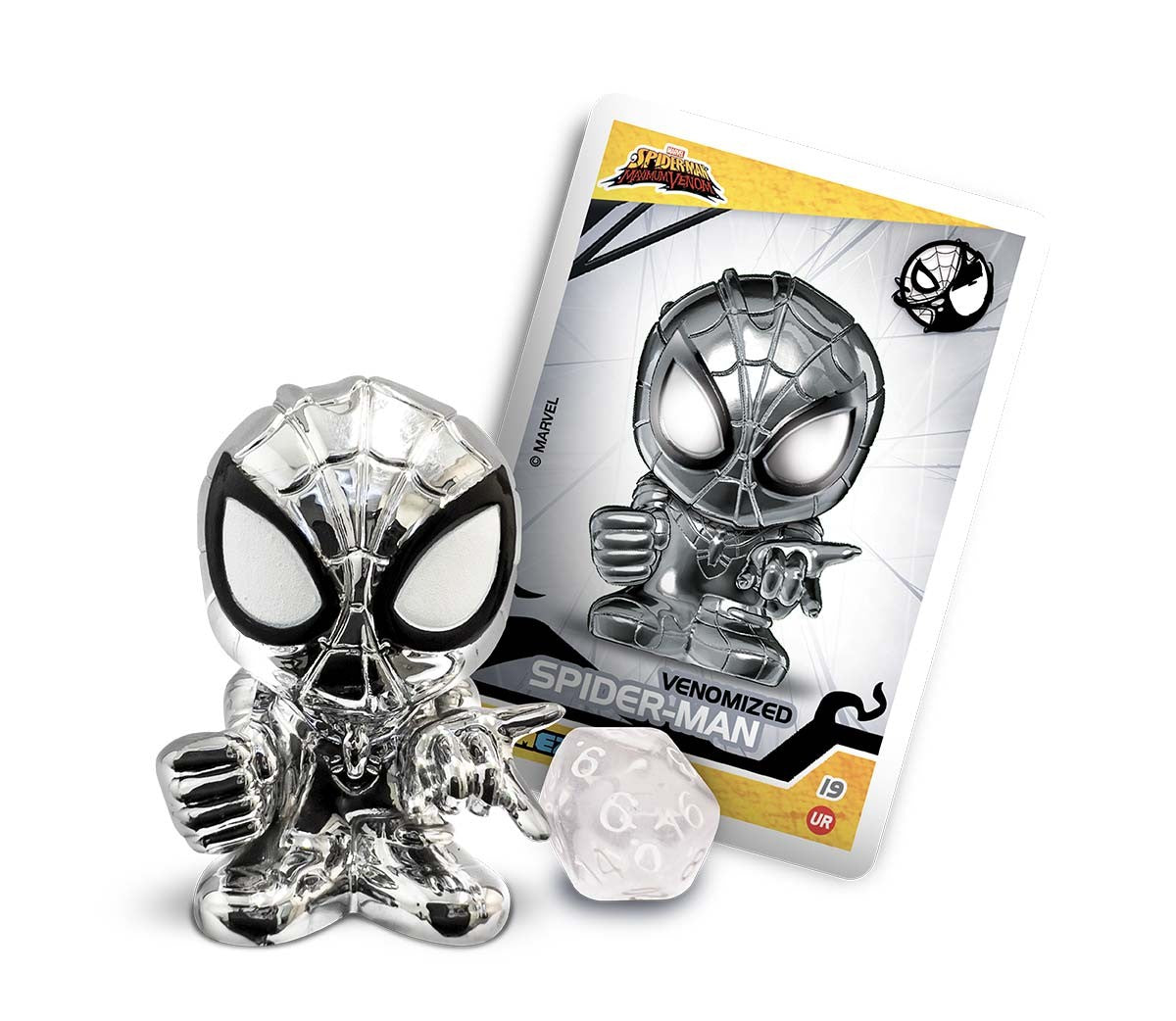 Spider-Man Silver è venduto all'interno di un rifinito box trasparente da esporre nella propria collezione, all'interno del quale troverai anche una carta da gioco e un dado da 20 per sfidare i tuoi amici al divertentissimo Boomez 3D Card Game.