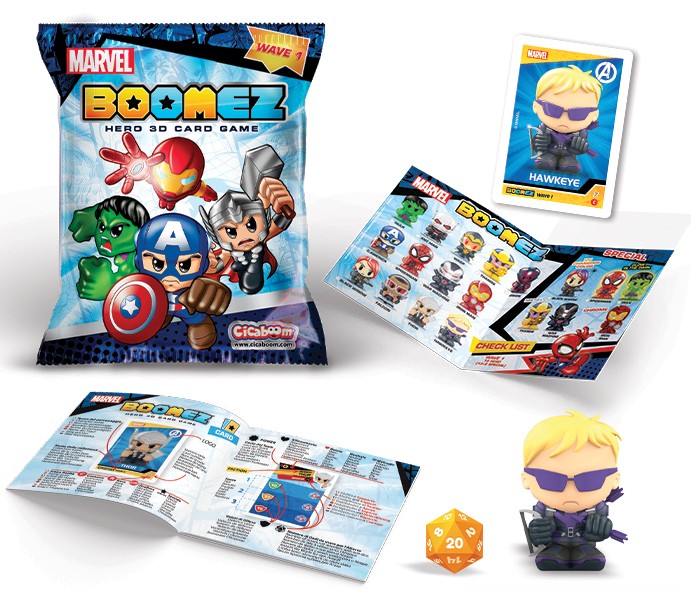 Ogni Boomez è accompagnato da una carta da gioco e da un dado da 20 facce per sfidare i tuoi amici al divertentissimo Boomez 3D Card Game.