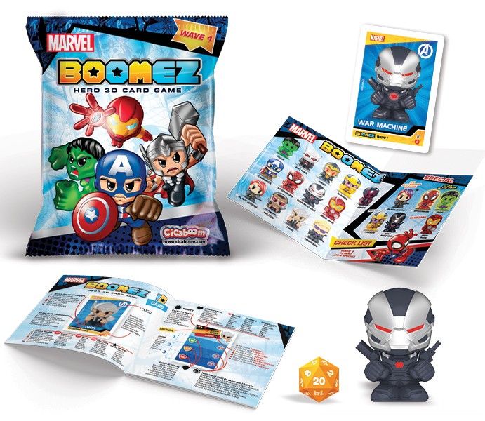 Ogni Boomez è accompagnato da una carta da gioco e da un dado da 20 facce per sfidare i tuoi amici al divertentissimo Boomez 3D Card Game.