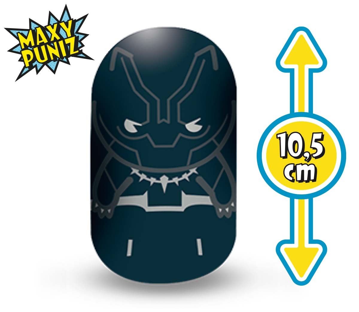 Black Panther è uno dei 12 Puniz Marvel Squishy Battle Maxy Size, i morbidissimi e coloratissimi Supereroi Marvel tutti da schiacciare, alti ben 10,5 cm!