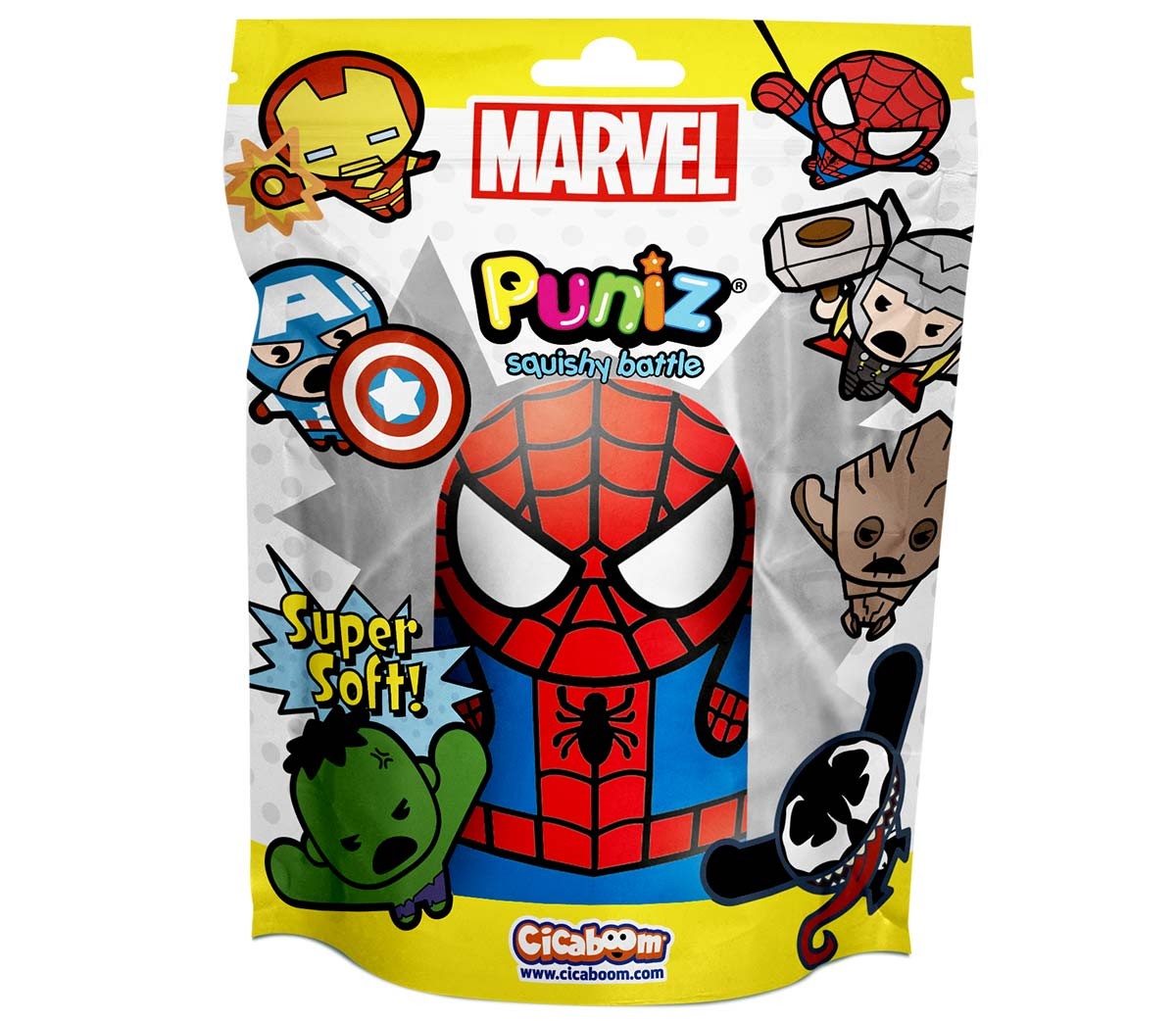Ogni busta contiene un Puniz Marvel Squishy Battle alto 10,5 cm.