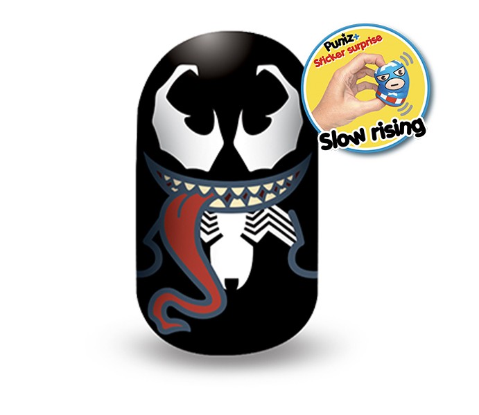 Venom è uno dei 12 Puniz Marvel Squishy Battle, i morbidissimi e coloratissimi Supereroi Marvel tutti da schiacciare.