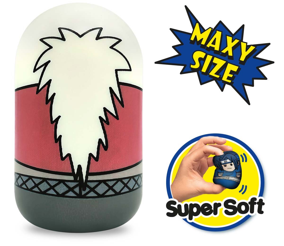 Jiraiya fa parte della collezione Naruto Puniz Squishy Battle, 12 personaggi squishabili e morbidissimi ispirati al mondo di Naruto!