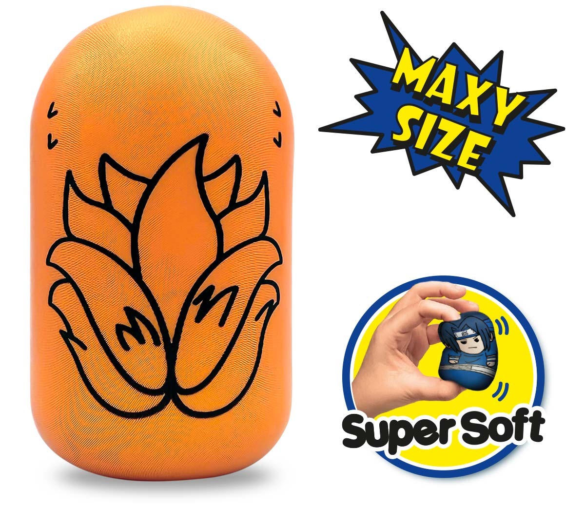 Maxy Kurama fa parte della collezione Naruto Puniz Squishy Battle, 12 personaggi squishabili e morbidissimi ispirati al mondo di Naruto!