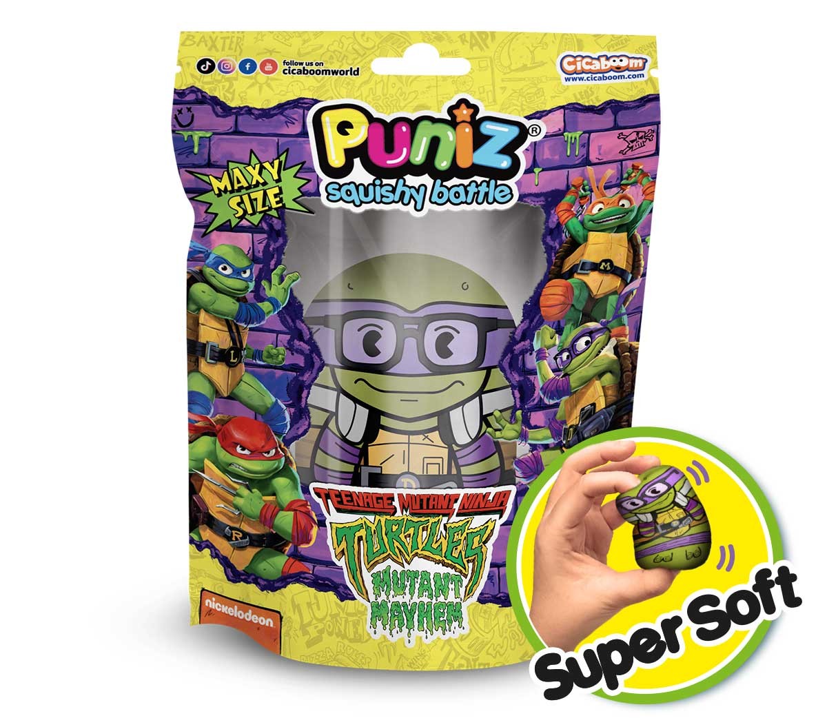 Donatello fa parte della collezione Puniz Teenage Mutant Ninja Turtles, 9 personaggi squishabili e morbidissimi ispirati al film Teenage Mutant Ninja Turtles: Mutant Mayhem.