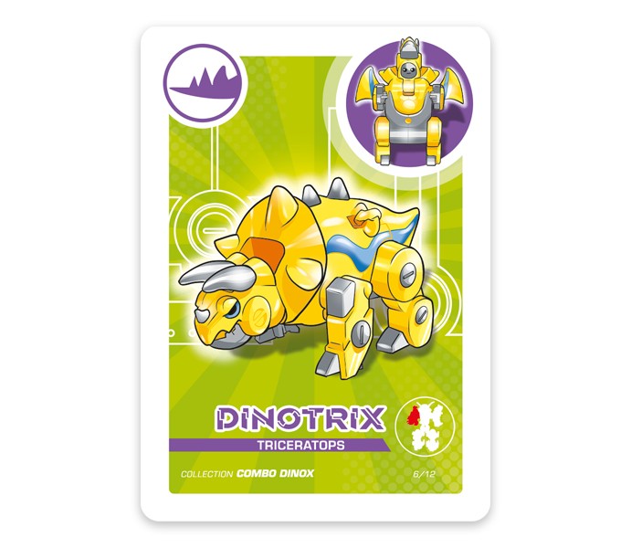 Dinotrix è uno dei 12 Saurobots, fantastici robot che si trasformano in dinosauri in poche semplici mosse.