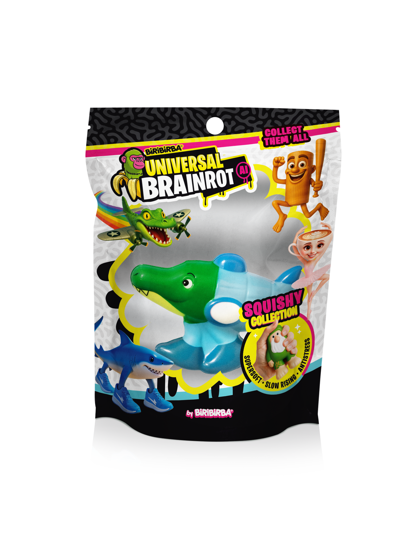 Scopri il nuovo SQUISHY 7 cm della collezione Universal Brainrot: un personaggio morbido, colorato e irresistibilmente schiacciabile!